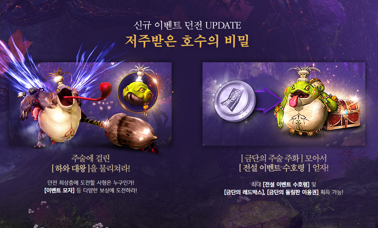많았던 걸로 비추어 볼 때 이번에 업데이트되는 저주받은 호수의 비밀 이벤트 던전도 비슷할 거라고 예상해봅니다.