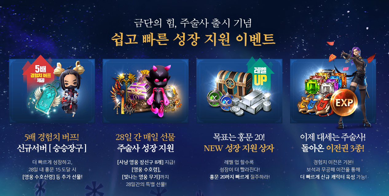 그리고 신규 서버에서는 경험치 버프 5배를 통한 더 빠른 성장이 가능하다고 하니