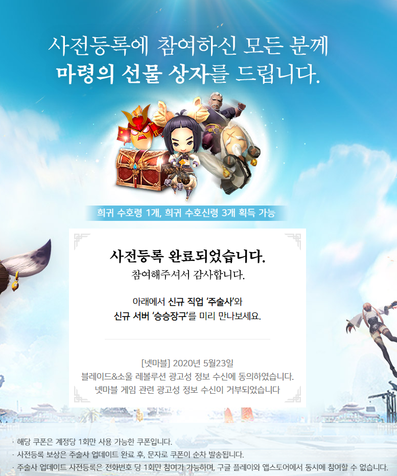 사전예약을 통해 희귀 수호령 1개와 희귀 수호 신령 3개를 획득할 수 있다고 하니