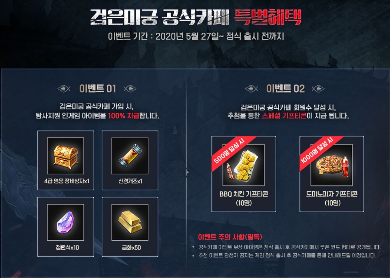 검은 미궁 공식 카페에 가입하면 탐사지원 인게임 아이템을 100% 지급한다고 합니다.