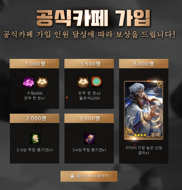 공식 카페 가입 인원수로 보상을 지급하는 이벤트를 하고 있는데,