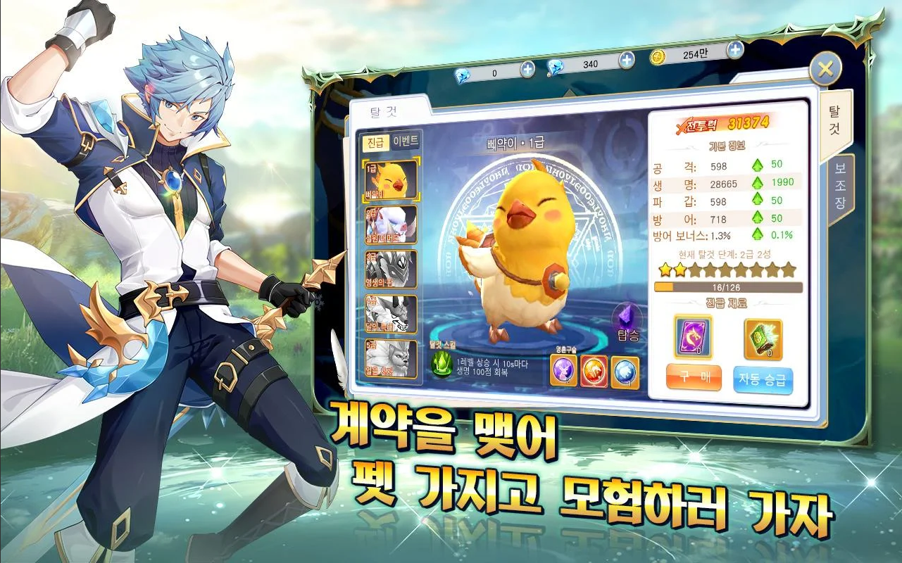 모험을 떠날 때 혼자서 외롭지 않게 하기 위한 펫 시스템도 준비되어 있습니다.