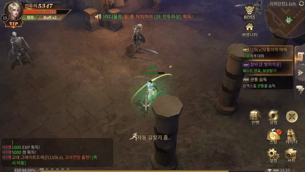 플레이를 조금만 진행하다 보면 제일 처음 열리는 콘텐츠인 것 같습니다. 개인 보스라고 해서 특정 던전으로 이동을 해서 혼자 보스 한마리를 상대하는 콘텐츠인데 이게 밸런스가 어느정도 잘 잡힌 것 같은게 처음만나는 초보 보스라고해서 쉽게 확 죽는 것 도아니고 아슬아슬하게 죽게끔 설정되어있는 것 같았습니다. 그리고 마지막에 보상이 디아블로와 흡사하게 초록 노랑 빛의 기둥을 띄우면서 아이템이 쏟아지는데, 이거 또한 아이템을 습득한다는 느낌이 강하게 나서 아이템 줍는 동안에도 기분도 좋고 효과도 좋았던 것 같네요.