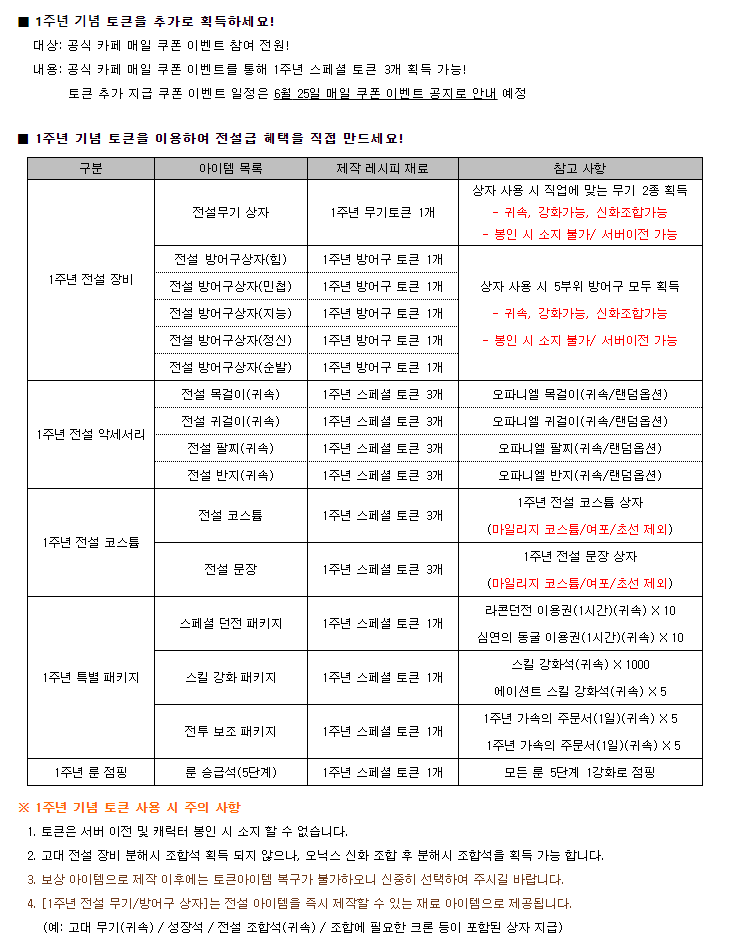 - 1주년 특별 패키지( 스페셜 던전 / 스킬 강화 / 전투 보조 )