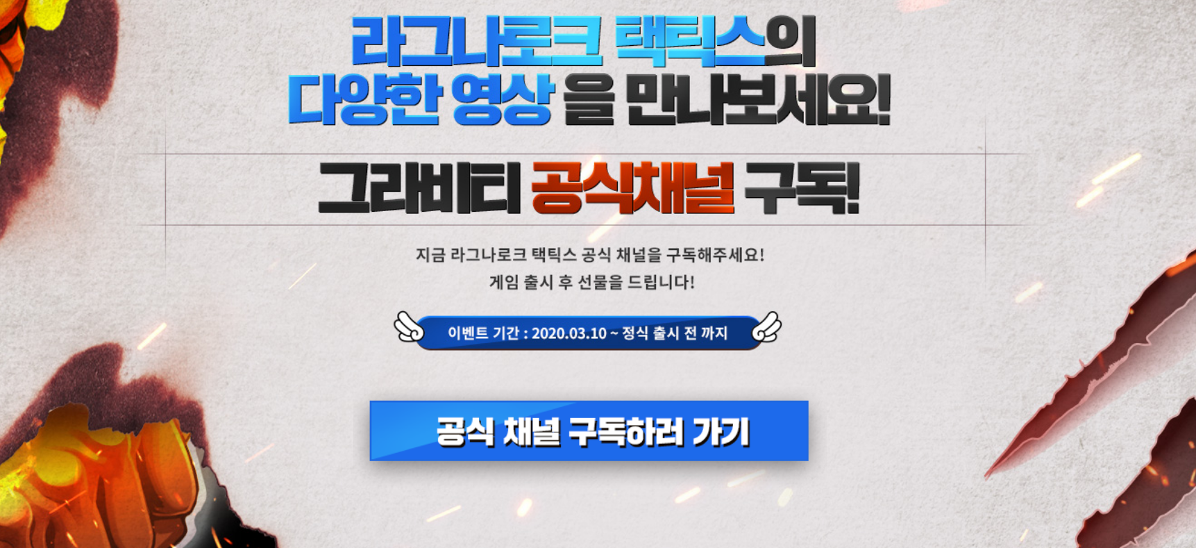 유튜브에 그라비티 공식 채널이있는데 여기를 구독하면 게임 출시 후에 선물을 주신다고 합니다.
