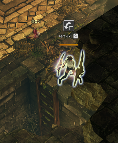 3번 모코코의 경우 아래쪽으로 내려가는 사다리가 있습니다. 아래 사진과 같이 사다리 근처에 상호작용(내려가기 G)이 나오고 이걸 통해서 내려가시면 됩니다.