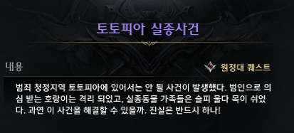 퀘스트를 깨면(토토실버->토토피아) 토토피아 실종사건 원정대 퀘스트가 나타납니다.
