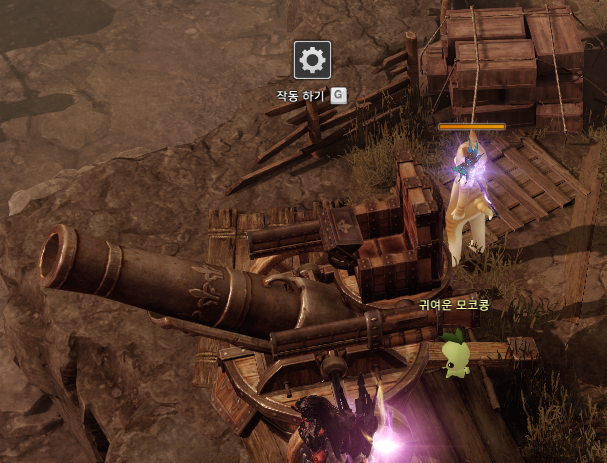 작살과 폭탄을 얻었으면 대포를 작동시켜 악어에게 대미지를 줍니다.