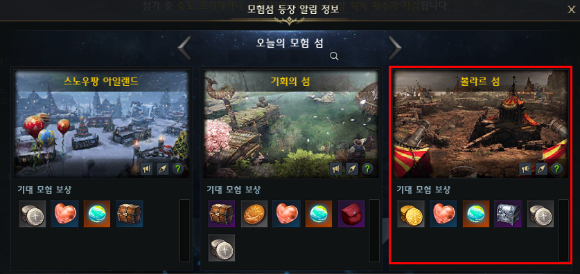 볼라르 섬은 보통 파티를 맺어서 협동 퀘스트를 진행해야 섬의 마음 상자가 나오는데요.