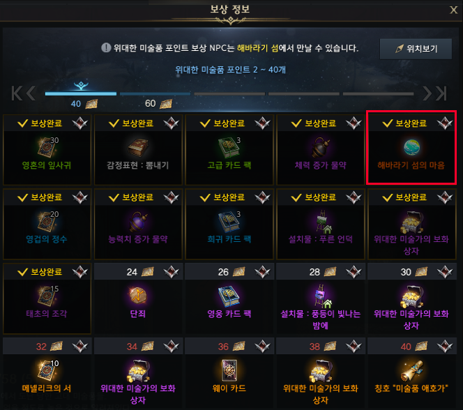 참고로 위대한 미술품은 2개 수집마다 보상도 주고 뒤로 갈수록 골드와