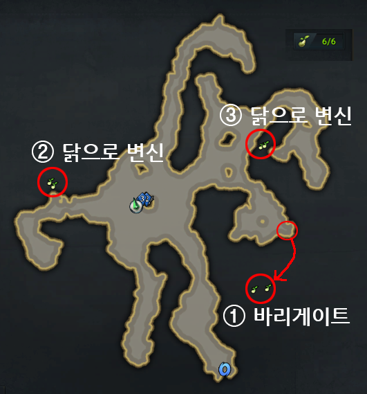 2번과 3번 위치에 있는 모코코는 닭으로 변신해야 들어갈 수 있습니다.