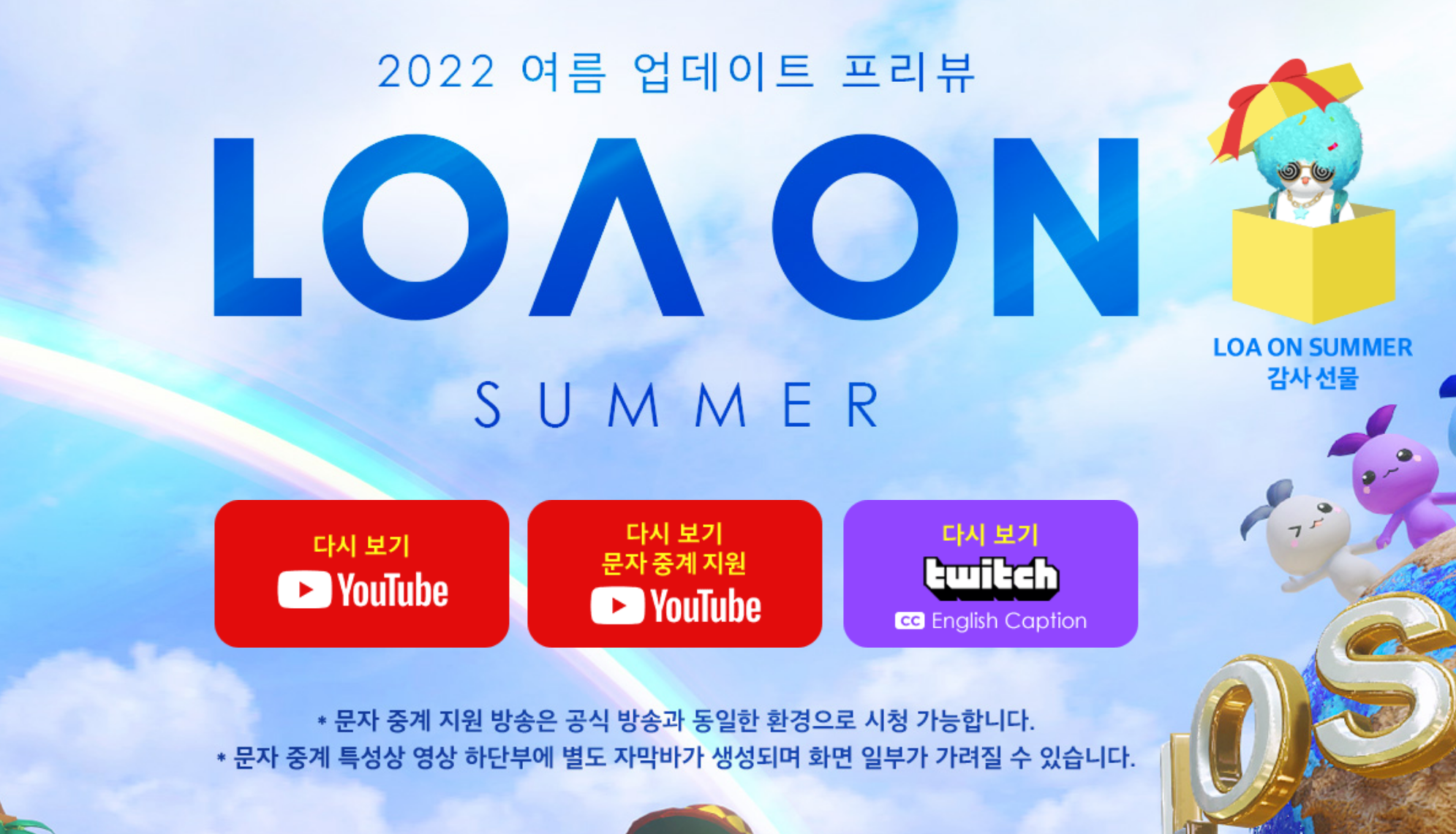 왜냐하면 로아온 썸머에서 앞으로의 업데이트 소식과 다양한 볼거리들 그리고 보상!!! 이 있기 때문에