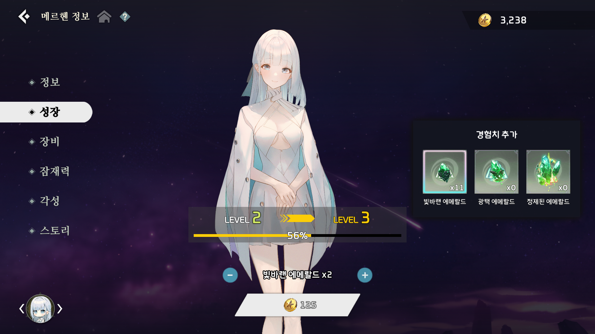 전투 스테이지, 스토리 스테이지를 몇 번 반복하다가 속성 시스템도 알려주고 캐릭터 성장 방법도 알려줍니다.. 그렇게 1-3 스테이지를 클리어하고 나면 로비로 이동하게 됩니다.