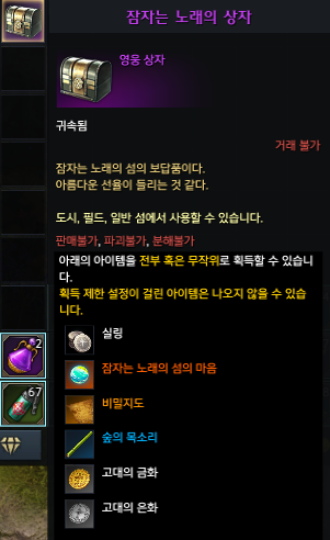보상으로 잠자는 노래의 상자에서 잠자는 노래의 섬마와 비밀지도 등등을 얻을 수 있습니다.