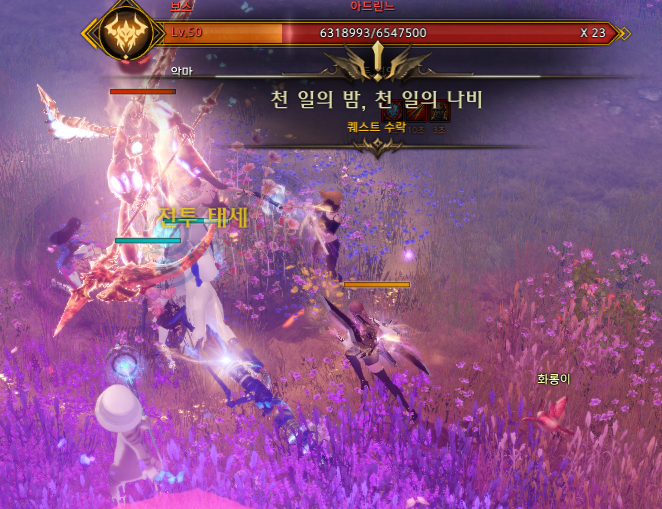 환영나비섬은 협동 퀘스트와 보스인 아드린느를 깨야 섬의 마음을 얻을 수 있으니 파티를 맺고 하는 것을 추천합니다.