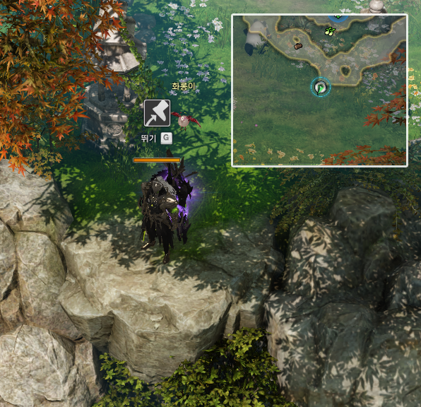 이 위치에서 뛰어서 아래로 이동하면 절벽을 건너는 곳을 찾을 수 있습니다.