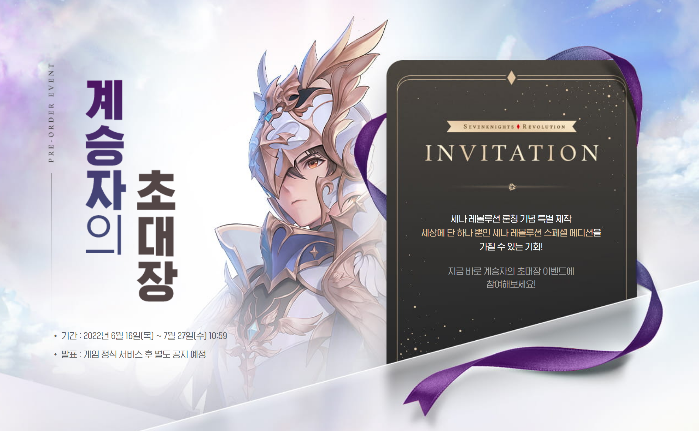 첫 번째 이벤트는 계승자의 초대장입니다. 친구 초대 이벤트로 세상에 단 하나뿐인 세나 레볼루션 스페셜 에디션을 보상으로 받을 수 있는 이벤트입니다.