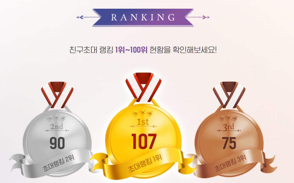 7월 19일 현재 기준으로 랭킹을 확인해보니 1~3위는 70명이 넘어서 상위 랭크는 힘들어 보입니다. 하지만 91~100위를 확인해보니 13~14명으로 비교적 낮은 수치입니다. 아직 이벤트 종료까지는 8일 정도 남아서 현재 초대 수보다는 좀 더 올라가겠지만 주변에 지인이 많은 분들이라면 충분히 100위 안쪽으로 노려볼만하지 않을까 싶습니다.