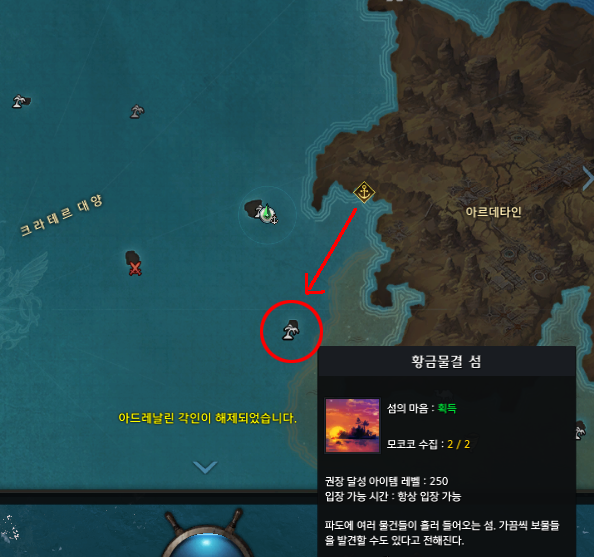 황금물결 섬 위치는 아르데타인 아래에 위치해 있습니다.