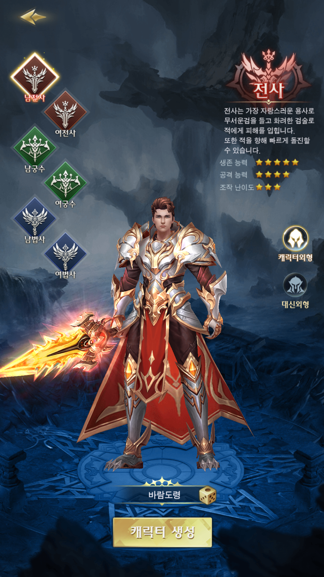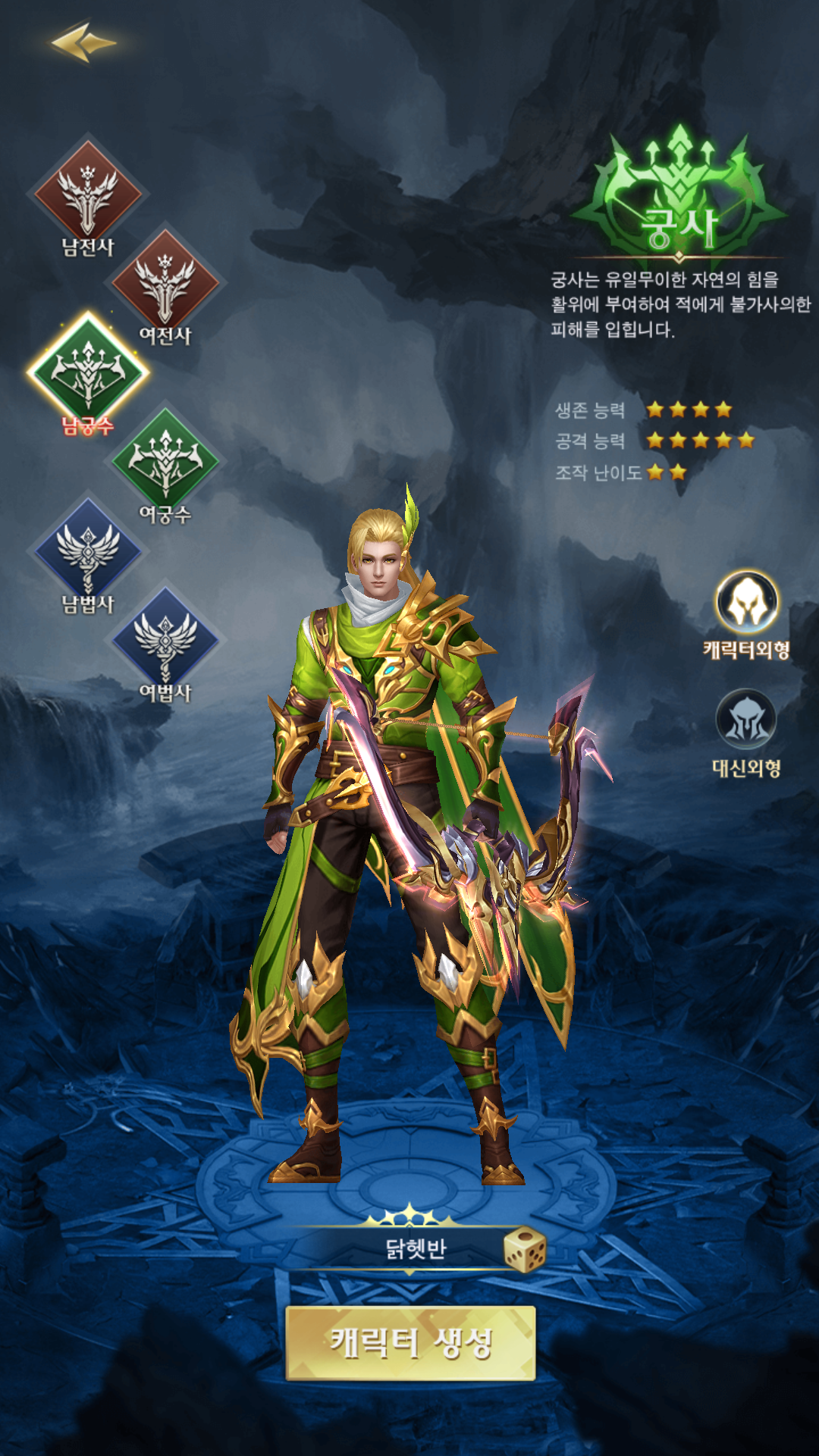 에스더소울에는 총 3가지의 직업 전사, 궁사, 마법사가 있고 각 직업별로 남자와 여자가 구분되어 있습니다. 각 캐릭터마다 특성은 존재하겠지만 초반에는 직업별 큰 차이는 없는 것 같습니다.