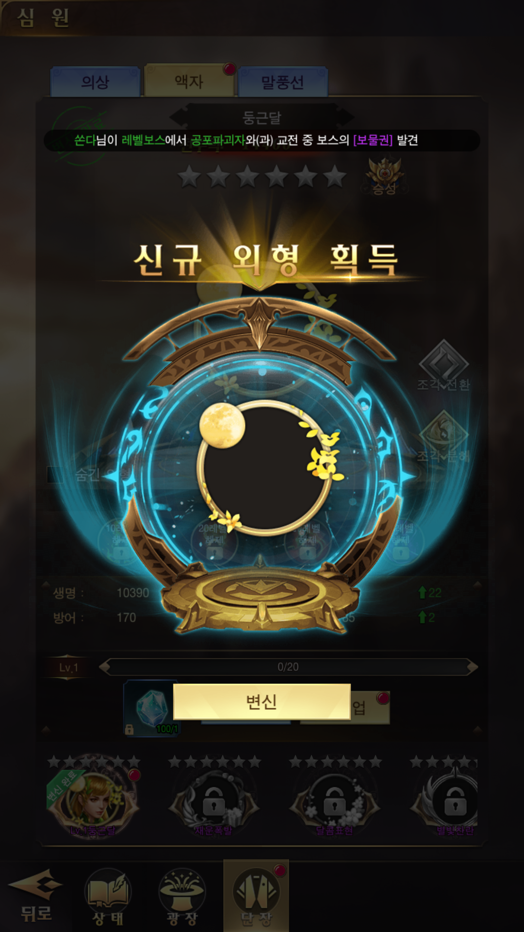 정말 놀라웠던 것 중 하나가 자동으로 플레이가 돼서 자세히 확인하진 못했지만 획득하는 것이 정말 많았습니다. 소울도 있고 칭호도 있고 액자, 탈것, 외형 등등 정말 다양하고 많은 아이템 획득들이 있었으며, 그리고 더 놀라왔던 건 이렇게 획득한 장비나 이런 것들을 강화를 시키는 게 같이 연동되어있었습니다.