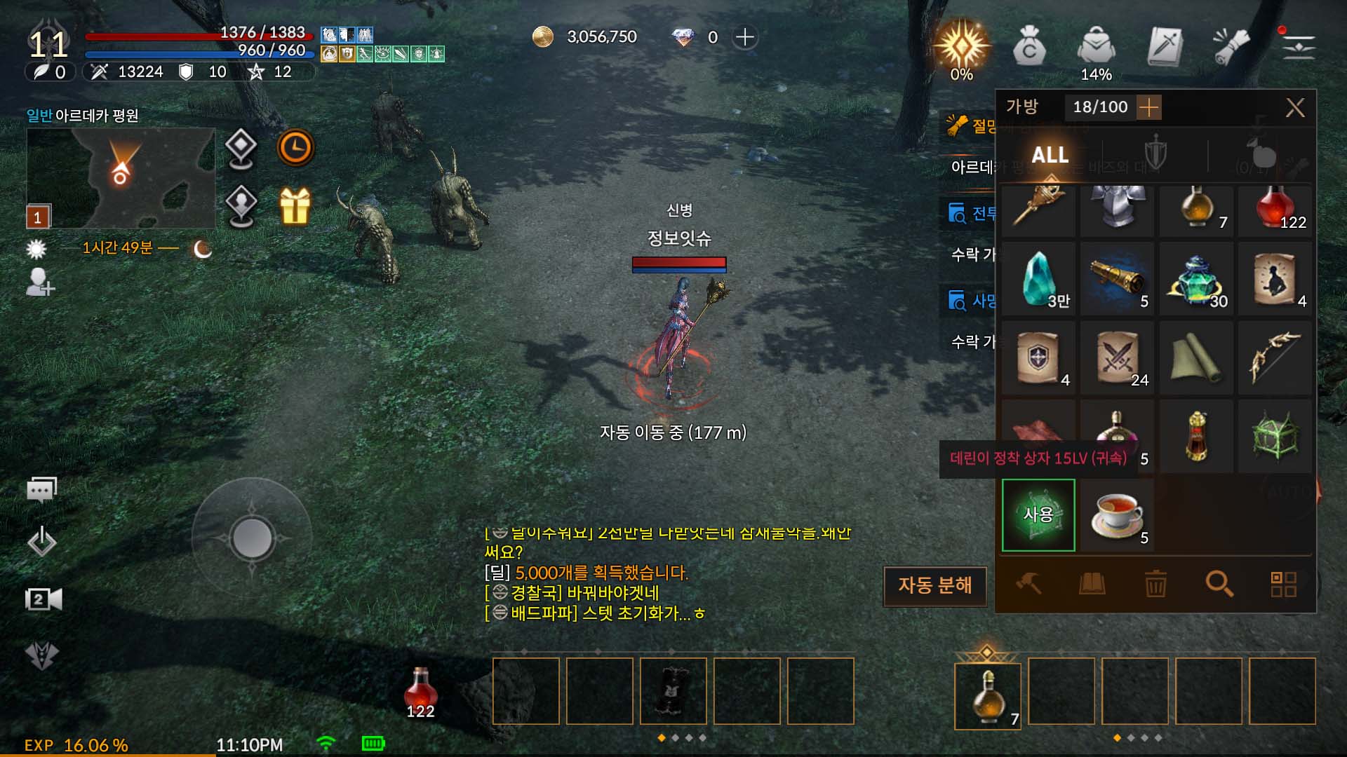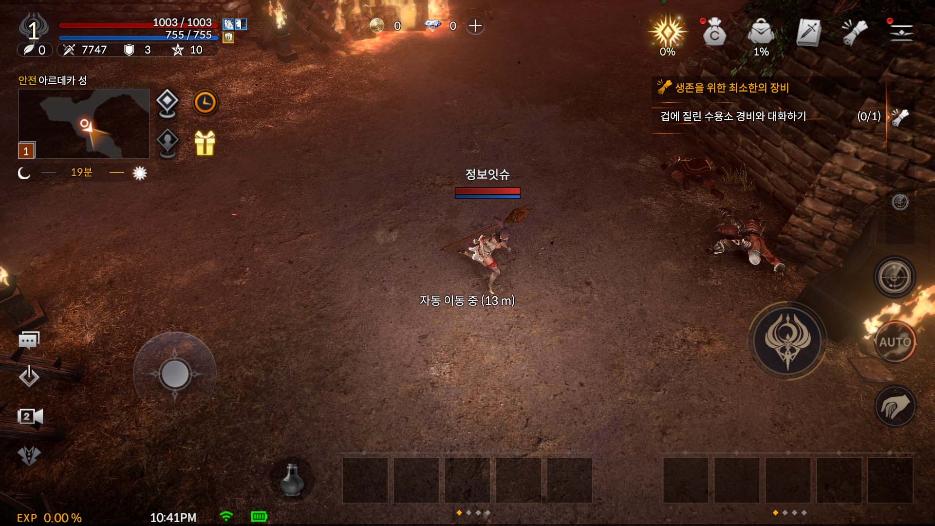 캐릭터를 생성하고 들어오니 바로 오픈 이벤트를 기념하는 팝업창이 나왔습니다. 팝업창을 끄고 나면 불타는 지역에서 이동하는 것으로 시작했습니다. UI는 리니지류의 게임과 비슷해서 어렵지 않게 적응할 수 있었습니다. 사실 이런 것 보다 처음에 보여드렸던 역대급 이벤트 보상이 얼마나 주는지가 궁금해서 빠르게 스킵을 하고 싶었지만 퀘스트 부분 스킵만 가능했습니다. 오픈한 지 시간이 꽤 지난 게임들 중에서는 퀘스트를 자동으로 진행시켜주는 시스템을 가진 게임도 있지만 데카론M은 수동으로 계속 퀘스트를 눌러줘야 했습니다.
