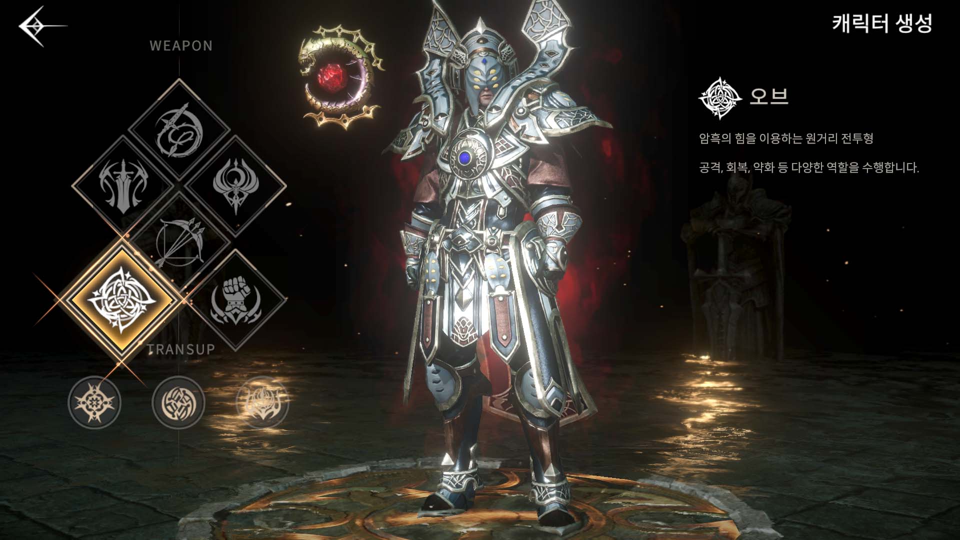 데카론M에는 한손검, 채찍, 지팡이, 오브, 활, 주먹 무기 이렇게 총 6가지의 캐릭터가 존재합니다. 다른 게임에서 볼 수 있는 일반적인 직업도 있지만 채찍이나 주먹 무기는 흔한 직업은 아니었기에 둘 중 어떤 캐릭터로 플레이를 해볼까 고민했지만 정석대로 가는 것이 좋아 보여 지팡이 캐릭터로 생성했습니다.