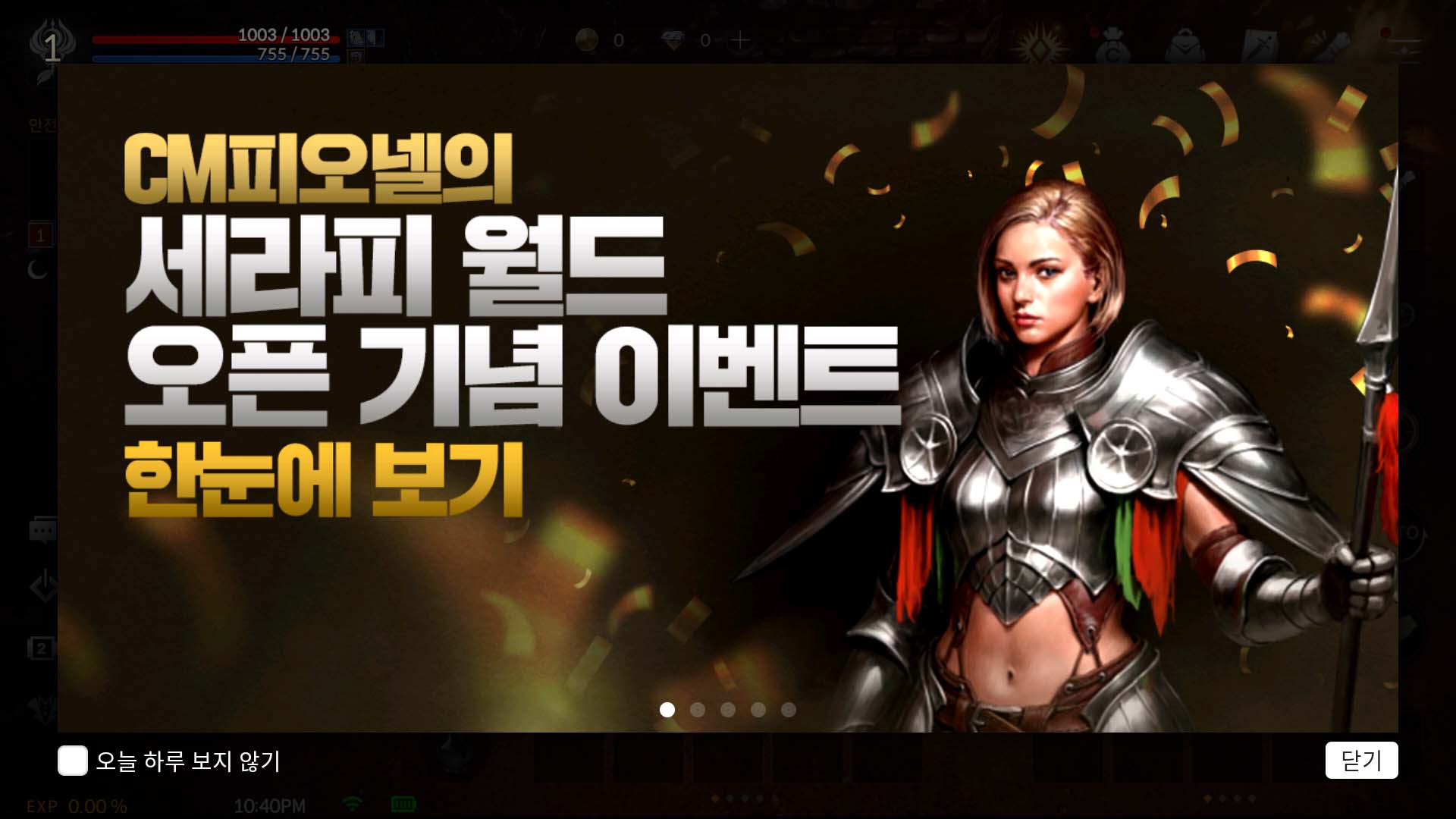 강제 퀘스트가 끝나고 바로 상점을 눌러봤습니다. 처음에 바로 인기 상점 탭이 열려있었고, 다양한 상품들이 있었지만 어느 정도 예상이 되는 상품들과 가격이었습니다. 그리고 이 게임을 시작하게 된 이유인 역대급 이벤트 보상을 받고 싶어서 이벤트 탭을 눌러봤지만 바로 받을 수 있는 보상은 월간 출석 이벤트 보상밖에 없었습니다. 그래서 좀 더 키워야 하는 건가 싶어서 더 플레이를 진행하게 됐습니다.