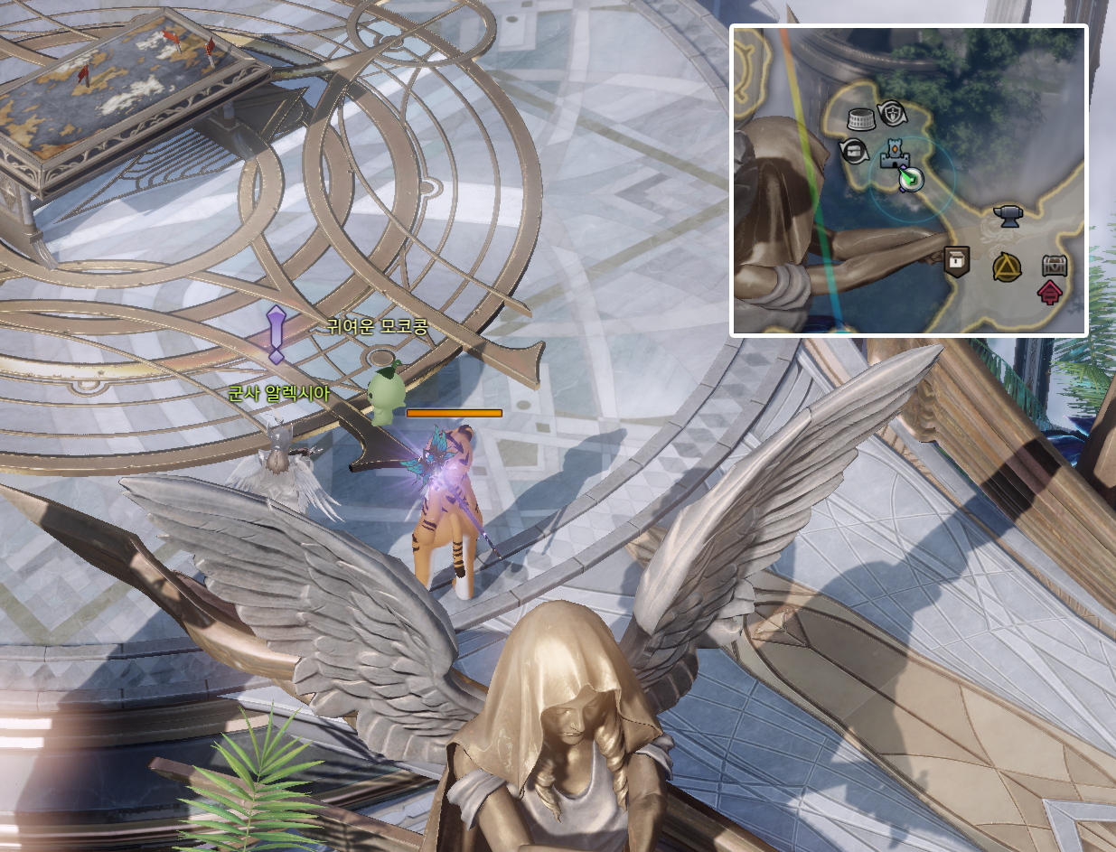 미니맵 위치에 가보면 군사 알렉시아의 위에 보라색 느낌표가 있습니다.