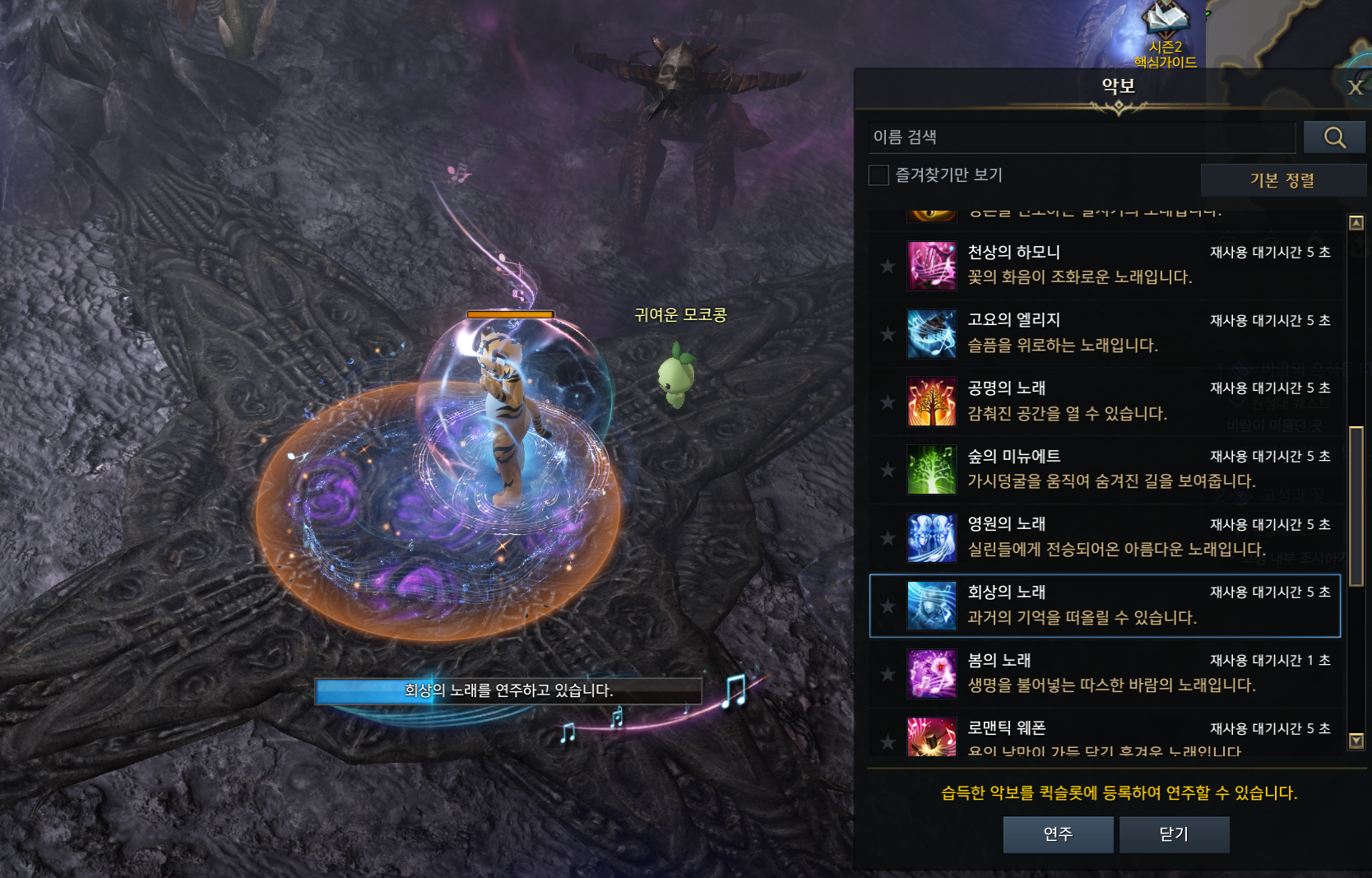 퀘스트를 따라 카마인의 주둔지 섬으로 이동하면 회상의 노래를 연주해달라고 합니다.
