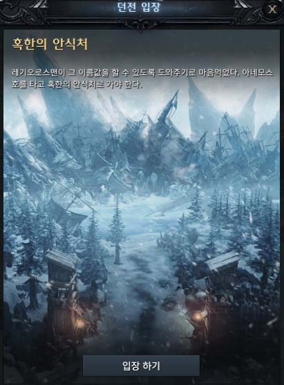 이차저차 퀘스트를 진행하다보면 혹한의 안식처로 이동하라고 나옵니다.