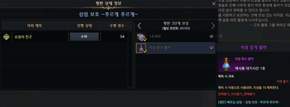 로헨델 - 삼림 보호 ~ 푸르게 푸르게~(요정의 친구) 평판 3단계